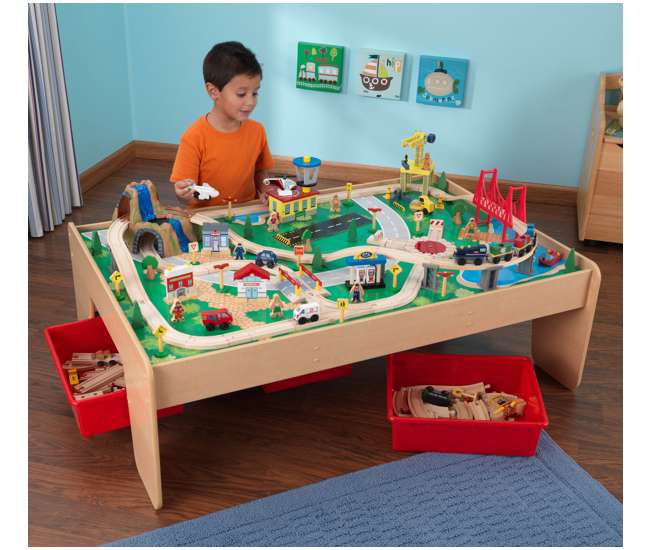 They can drive the train around town, taking people to and from the airport. Kidkraft metropolis wooden train set & table with 100 accessories included. The train set will provide kids with hours of imaginative play while the table helps keep playtime off the floor and closer to eye level. With our train sets, train tables and train accessories, your child will discover his or her next adventure and have a blast. Shop for kidkraft kids table online at target.